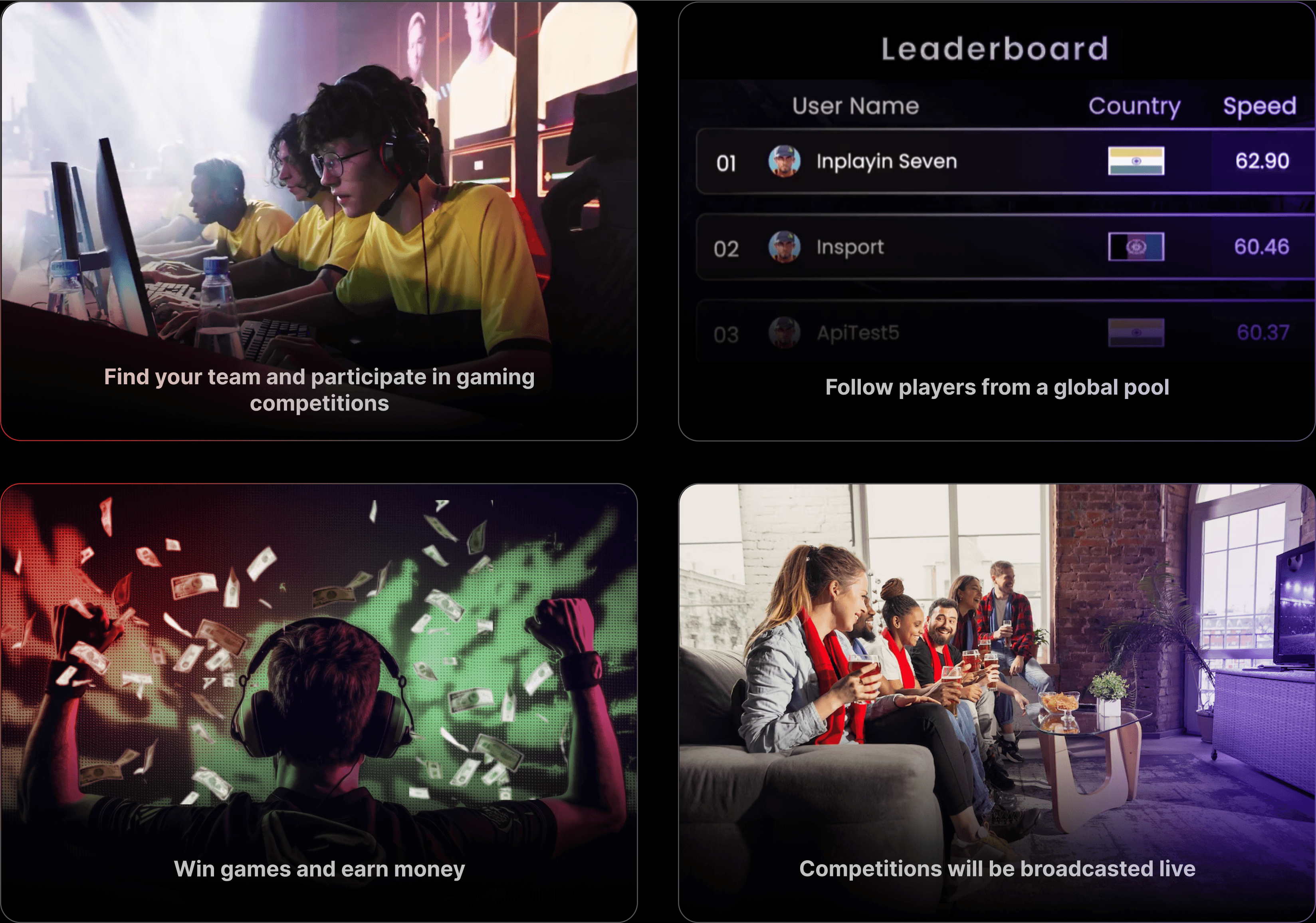 InPlayIn E-Sports League Buy your teams, follow players from a global pool. Bid for players and compete with other teams in the inplayin Egaming league. Competitions will be broadcasted live creating opportunities to earn real money for team owners, players and coaches. Participate in the inplayin Egaming League now